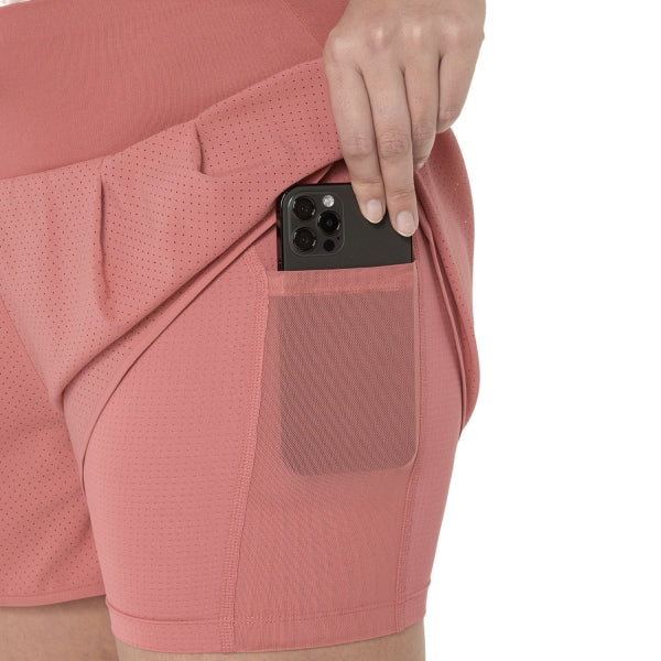 shorts de running para mujer ASICS Road 2 en 1 de 3,5", confeccionados con un tejido ligero, transpirable y totalmente perforado, son perfectos para rendir al máximo durante los entrenamientos y competiciones más intensos en la naturaleza.